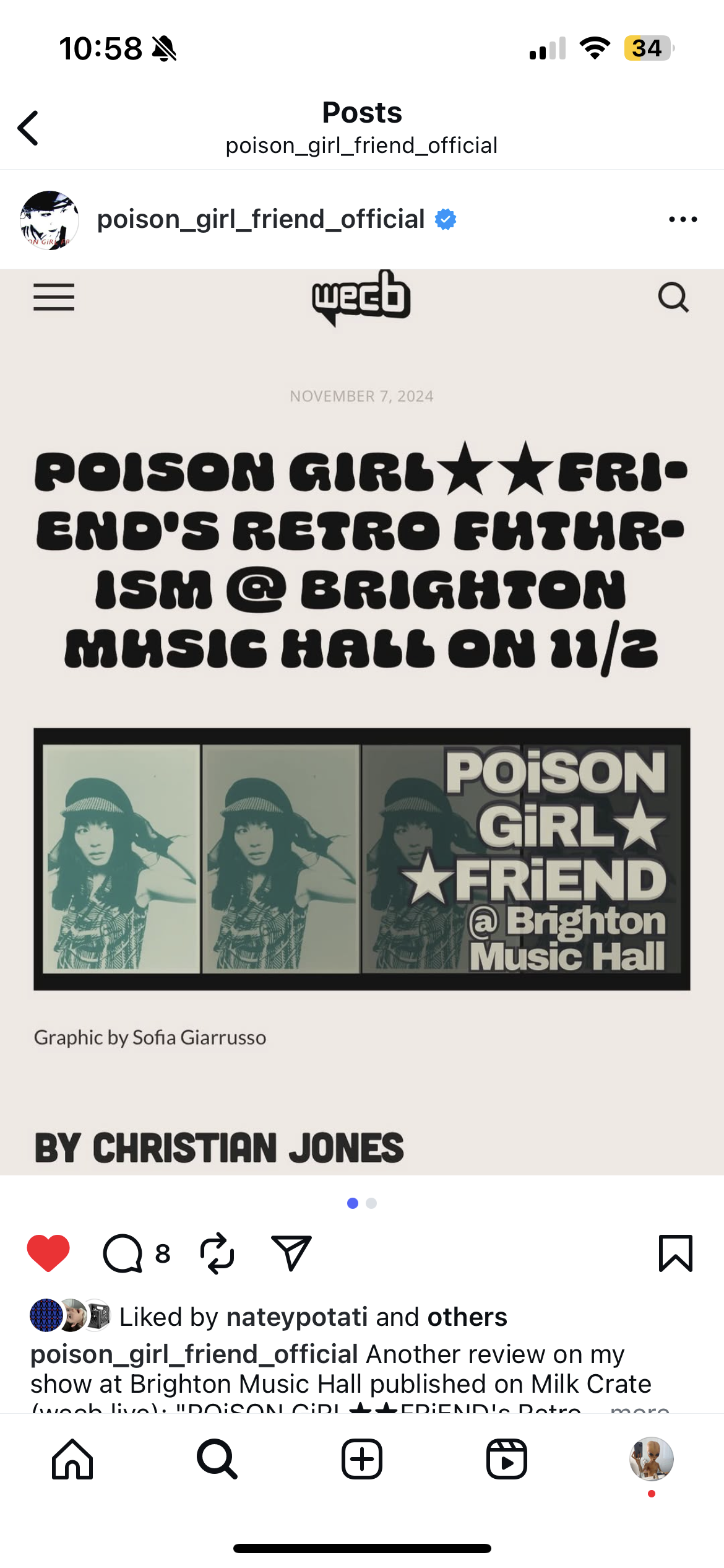 My first-ever concert review for Milk Crate was reposted on Instagram by the artist, POiSON GiRL FRiEND.